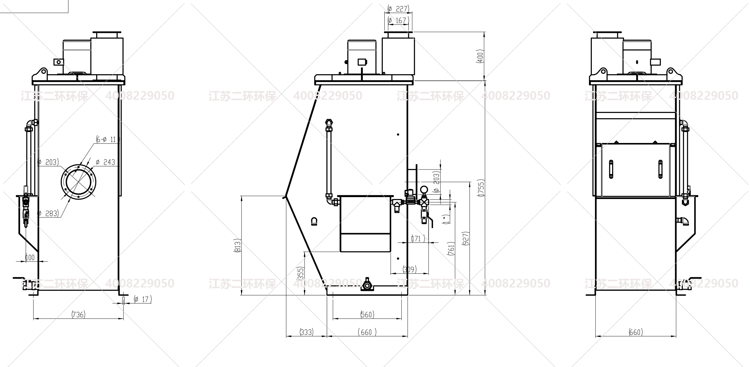 2、電焊、氬弧焊、二氧化碳氣保焊的煙塵,在引風機抽風的動力作用下,進入除塵器進風口。