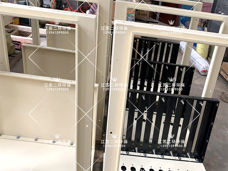 5、設(shè)備正面開(kāi)門(mén),方便快捷插入布袋籠架,更換維護(hù)方便,占地面積小,通常安裝在室內(nèi)。