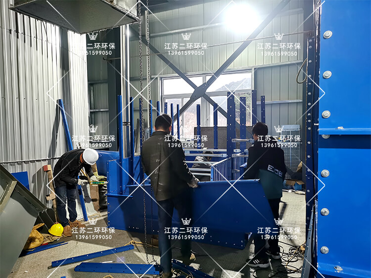 安裝方案:扁布袋除塵器拆散后,碎片化從門(mén)窗進(jìn)場(chǎng),然后模塊化組裝,積木式拼裝,滿足業(yè)主不破壞廠房外觀要求。