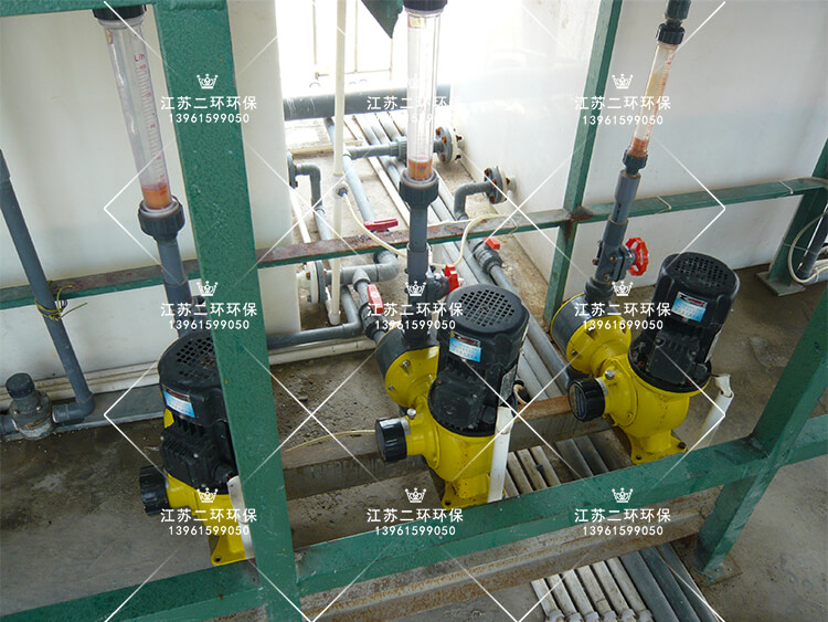 9、pH 回調(diào):經(jīng)過濾后的出水流入進(jìn)行 pH 回調(diào),其目的是為了保證出水 pH 在 6~9 之間,投加藥劑為 H2SO4,投加方式為計(jì)量泵自動投加。終端監(jiān)測槽內(nèi)合格水自流入清水池,不合格水回污水池。
