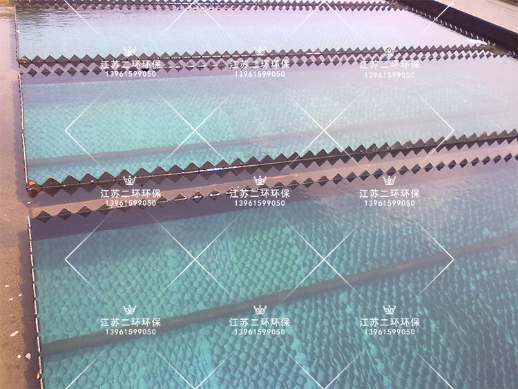 5、高效凈化處理:斜板沉淀器設(shè)置混凝反應(yīng)區(qū)、主流區(qū)、過渡區(qū)、斜板區(qū)、清水區(qū)等 5 個(gè)區(qū):混凝反應(yīng)區(qū)的主要作用是通過 PAC、PAM 的作用將廢水中細(xì)小的難以沉降的物質(zhì)捕集,使之成為較易沉降的礬花。主流區(qū)位于斜板沉淀池底部的流動區(qū),它的主要作用是傳輸待分離的混合液進(jìn)入斜板區(qū),沉淀后的污泥又從此處進(jìn)入斜板沉淀池污泥斗。過渡區(qū)的作用是消能和調(diào)整流態(tài),防止污泥上翻,保證固液分離效果;同時(shí),它還具有均勻進(jìn)水和作為污泥回流通道等功能,起著雙向傳輸?shù)淖饔?。斜板區(qū)是泥水分離的實(shí)際區(qū)域,在這里,污泥絮凝體形成并在重力作用下沉降到斜板上,澄清后的污水進(jìn)入清水區(qū)。清水區(qū)能夠分隔沉淀工作區(qū)與出水堰,使斜板區(qū)的沉降過程不受出水水流影響;鋸齒形溢流堰比普通水平堰更易加工也更易保證出水均勻。