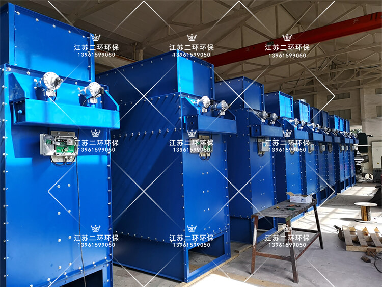 9、此時,瞬間接通脈沖電源,電磁脈沖閥開啟,4公斤以上壓力的壓縮空氣瞬間引入周邊空氣作為二次放大的充足氣源,一并高壓噴吹打入濾筒。使褶皺的濾筒瞬間膨脹變形鼓起,而產(chǎn)生振動,在高壓脈沖氣流沖刷的作用下,附著在濾筒外表面上的粉塵被一掃而光,掉入除塵器底部收集粉塵的灰斗收塵箱中。